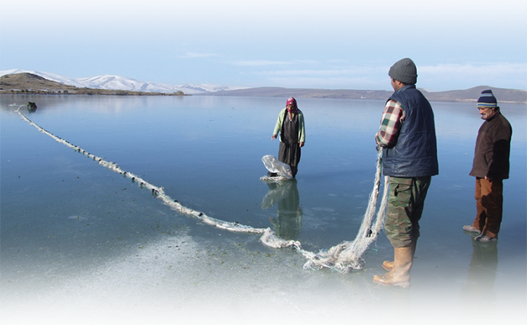 Yılın dört mevsiminde yapılabilen balıkçılık yöre halkı için önemli bir ekonomik gelir kaynağı teşkil etmektedir. Gölde balıkçılık önemli bir insan aktivitesi olup, kışın buz tutan gölde kalın buz tabakası kırılarak balık avlanmaktadır. Gölde yakalanan en önemli balık türü Sazan balığıdır. Ancak kurak geçen mevsimlerde, göl seviyesi hızla çekilmekte ve bu nedenle sazan gibi türlerin üremesi için gerekli sazlıklar daralmaktadır. Bununla beraber, birçok balıkçının yasaklara uymayarak kontrolsüz avlanmaları balık stoklarını olumsuz etkilemektedir.